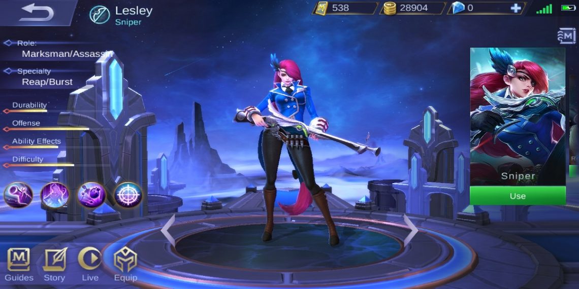 Lesley is one of the marksman heroes often used in Mobile Legends, especially for low match tiers, because it is easy to use and has considerable damage. As a mainstay sniper, Lesley's passive skills can kill enemies in one shot. Not to mention the long-range attack that can produce high damage from a distance.