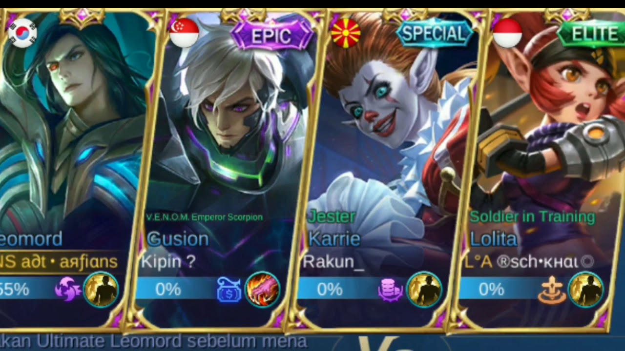 Mobile legend leomord. Tanggal 21 April 2020 Mobile Legends merilis hero terbarunya yaitu Popol and Kupa.. Sebagaimana sudah dijelaskan dalam artikel sebelumnya, mereka merupakan partner yang tak terpisahkan. Jika HP milik Kupa habis Popol harus summon Kupa kembali dengan skill satu atau skill dua miliknya. Mobile Legends: Bang Bang memang menarik perhatian banyak gamers di Indonesia. Popularitasnya juga tidak tergantikan dalam 4 tahun terakhir dan membuat banyak orang setia memainkan game MOBA mobile satu ini.Namun, tidak semua pemain paham akan mekanismenya seperti item , hero, strategi, talent , dan lain sebagainya. Memang selalu ada faktor strategi bila bermain game MOBA, seperti mekanisme ... Leomord is a sidelaner that isn't that popular right now thanks to much better sidelaners. But that doesn't mean he's bad to use if you understand Combo Leomord Mobile Legends (ML). Some of the heroes below will help Leomord get stronger. The combos are also relatively large so you don't just stick to a few heroes. Mobile Legends Advanced Server Patch 1.6.16: Weekly free heroes. 8 Free Heroes: Server Time 9/10/2021 05:01:00 to 9/17/2021 05:00:00 (Tap the Settings button on the top-right corner of the main page to check.) Carmilla, Leomord, Irithel, Martis, Gatotkaca, Dyrroth, Minotaur, Baxia