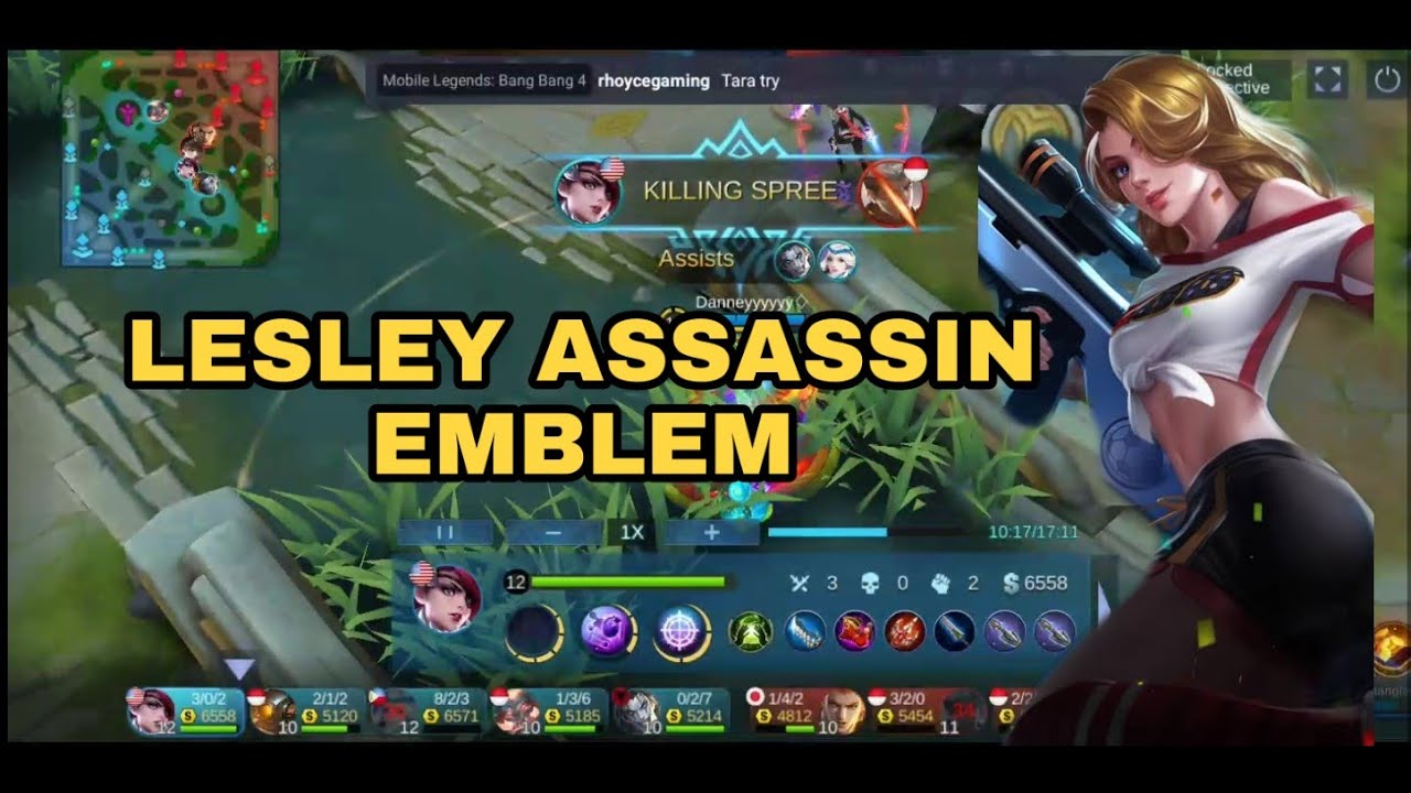 Mobile Legends: Bang Bang LESLEY MENTAL COMEBACK Emblem Build Lesley Mobile Legends Pain 2021. We'll be offering two emblems to choose from, which you can adjust according to the conditions during the game. The first is when Lesley located in Goldweg and the second when it will Hyper carry. 1. Assassin's emblem with "High and Dry" passive. Tips Item Build, Emblem, dan Spell Lesley - Lesley adalah salah satu hero marksman Mobile Legends: Bang Bang (MLBB) yang memiliki andalan serangan jarak jauh pada skill aktifnya dan serangan critical pada skill pasifnya.. Lesley banyak digunakan oleh para player Mobile Legends karena memiliki damage yang sangat besar dan sangat berguna ketika team fight. ...