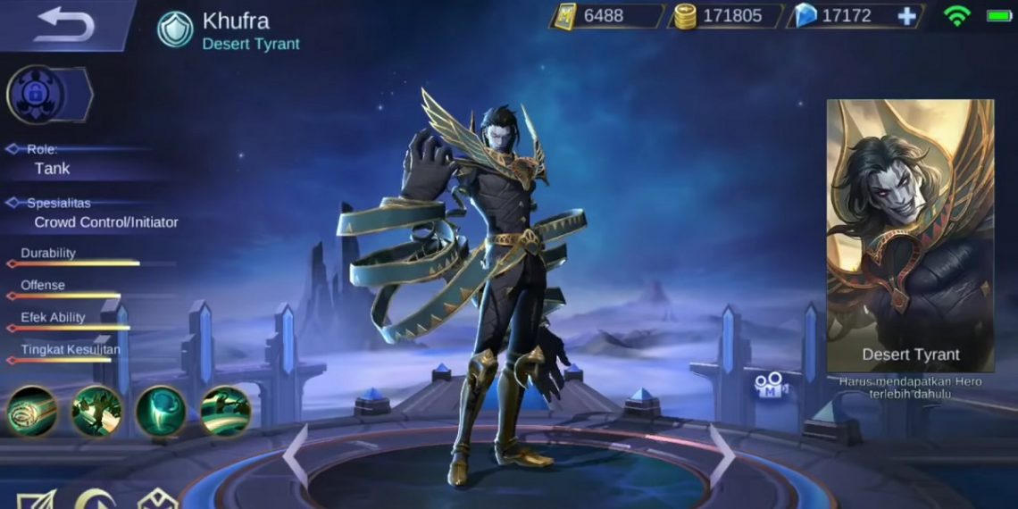 Equipment build Khufra Mobile Legends Top Global. Chufra is Moonton's newest tank role hero, the skill he has Hero Chufra many have an effect Crowd control. This hero is one of the rulers of the desert land in the western part of the Land of Dawn, ruling a very hideous kingdom and terrible tyranny.