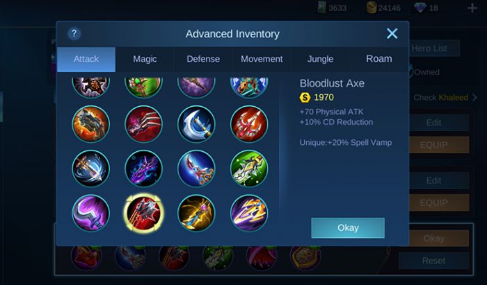 Build Item Khaleed Mobile Legends. Khaleed akan sangat cocok dijadikan fighter yang memiliki armor cukup tebal dan mengandalkan true damage nya. Sangat cocok untuk menggunakan tiga item damage dan dua item sisanya adalah defense yang berguna untuk late game. Berik build terbaik untuk hero Khaleed di Mobile Legends.